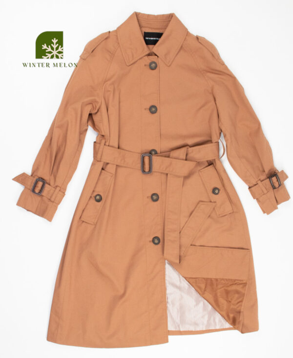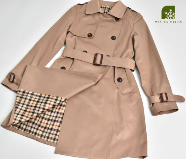 เสื้อเทรนซ์โค้ทที่ใส่แล้วเท่ เนื้อผ้ากันน้ำอย่างดี ใส่เที่ยวต่างประเทศในวันที่อากาศหนาวเย็นให้ความอบอุ่นได้ดีมากๆ มาพร้อมเข็มขัดผ้าที่สามารถปรับกระชับได้ตามสรีระ ช่วงปลายของเสื้อผ้าด้านในเป็นลายสก็อต ดีไซน์มาอย่างดี แอบแฝงไปด้วยความคลาสสิค